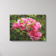 Agradable grupo de rosas rosas rosas escondidas en un lienzo verde