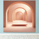 Ein sanfter, architektonischer Tunnel aus roséfarbenen Bögen erzeugt eine ruhige, meditative Stimmung.