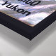 Cartel capeado anunciando los servicios de la mítica Aviación de Moose Volador de Talkeetna, Alaska. Cuenta con una de las aeronaves azules y amarillas de la empresa, equipadas con "neumáticos tundra" extragrandes para aterrizar en terreno escabroso. Texto que dice: "AVIACIÓN DE LA MOOSA VOLANTE", "Volamos, cuéntanos adónde quieres ir", "CAZA, PESCA, TIERRAS DE GLACIER, CARGO", y "Nome - Talkeetna - Fairbanks - Ft. Yukón" también aparece. Aviación de Moose Volante: Vuelo, desembarco de glaciares, carga, caza y fletamento de pesca. Volamos, cuéntanos adónde quieres ir.