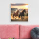 Celebrate the power and beauty of untamed freedom with this striking artwork featuring two horses thundering across an open landscape at sunset. The warm golden light catches their flowing manes and strong silhouettes, creating a dramatic, high-energy scene filled with motion and life.