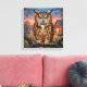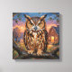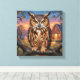 A metal canvas art that features a striking Great Horned Owl, rendered in a rich, thick impasto oil painting style. The vibrant textures and warm sunset backdrop create a cozy, rustic atmosphere that is perfect for nature lovers and art enthusiasts alike.