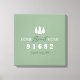 Impresión de lienzo de código postal de casa dulce blanco de sabio para casa. Personalice la plantilla con código postal, ciudad y estado. Todos los colores son editables, incluidos el fondo, el texto y los elementos de diseño para que pueda coincidir con el estilo de su hogar. © Kimbellished, LLC