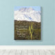 Esta impresión de lona muestra una foto de una magnífica vista de las montañas cubiertas de nieve con una escena contrastante de un bosque de cactus saguaro en el desierto de Sonora en primer plano con una famosa cita del filósofo chino Lao-Tzu que dice: "El viaje de mil millas comienza con un solo paso". Esto fue fotografiado en el área de Superstición de la senda Masacre Grounds en las afueras del Parque Estatal Lost Dutchman en Apache Junction, Arizona. La montaña es Four Peaks, y muchas vistas de ella se pueden ver mientras manejan por el Apache Trail, la histórica carretera 87. Gran parte de este camino es tierra más allá de la pequeña ciudad de la Llanura de Tortilla y viaja a través de pintorescos cañones con vistas a montañas y acantilados en toda dirección. El hermoso lago Canyon y el lago Apache están en esta ruta. El camino termina en el lago Theodore Roosevelt en la presa y el puente. ¡Es un impulso que no olvidarás pronto! Personalizar esto si le gusta usar los muchos estilos de fuente y colores de Zazzle. ¡Diviértete haciéndolo suyo! Si necesitas ayuda, por favor no dudes en contactarme, y estaré más que contento de ayudarte. Puedes contactarme a través de mi página de Facebook de Wolf Moon Art and Design. Puedes encontrar el enlace en mi página Acerca de en mi tienda. Miren al final de la página donde dice "conéctate con el arte y el diseño de Wolf Moon". Derechos de autor originales de la fotografía 2019 de Karen Coffelt.