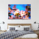 Árbol de cerezo japonés en flor. Clusters de flores rosadas de sakura sobre ramas de árboles y ramas. Cielo azul en el fondo. Pintura digital estilizada extragrande de una fotografía. Arte de lienzo envuelto o estirado para decorar tu lugar. Impresiones florales y regalos para cualquiera. Puede transferir este diseño a una variedad de otros productos de su elección, grandes o pequeños, incluyendo copias a bajo precio y regalos. Por favor, utilice el botón "Editar diseño" para ajustar la imagen a la forma del producto en particular. Le transferirá a la Herramienta de diseño. Utilice la opción "Ajustar/Rellenar" (menú del lado derecho de la Herramienta de diseño). Puede escalar, girar, voltear la imagen en la plantilla de producto e incluso agregarle algo de texto. Solo sé creativo, diviértete, cómprate uno y sé feliz!