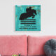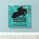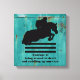 Una silueta de caballo y jinete con un jinete ecuestre en un puente/cazador que salta sobre una valla. Fondo metalizado oxidado de color turquesa. La cita dice: el coraje se está asustando hasta la muerte y cargando de todas maneras.