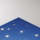 Ein zarter Ast mit üppig blühenden, pastellfarbenen Kirschblüten schwebt vor einem weichen, blauen Hintergrund. Die Blüten leuchten im Licht, umgeben von feinen Glanzpunkten – ein Symbol für Ruhe, Erneuerung und stille Schönheit des Frühlings.