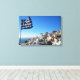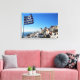 Lienzo con imagen de la ciudad medieval de Santorini y bandera griega, en las islas Cícladas, Grecia