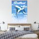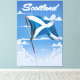 Scotland Saltire hermoso afiche de viaje de la bandera contra un fondo celeste nublado.