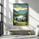 Bring the calm of Scotland home. This Scottish Highlands canvas features rolling green glens, layered mountain peaks, plus a quiet loch that anchors the scene. The palette feels fresh and outdoorsy, making it easy to style in a living room, bedroom, cabin, or office. A thoughtful gift for Scotland trips, UK travel lovers, hikers, and anyone who wants Highlands wall art with a clean travel poster look.
