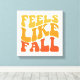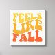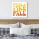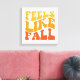 Esta atrevida y vibrante obra de arte sobre el tema de las caídas incluye la frase "Se siente como caída", que se muestra de forma prominente en un tipo de letra chunky inspirado en la retro. El texto está organizado en un diseño dinámico y lúdico que atrae la atención y añade un sentido de movimiento al diseño. La paleta de colores de gradiente cálido pasa del amarillo dorado al naranja profundo, capturando perfectamente los ricos tonos de las hojas de otoño. La sencillez del diseño, junto con su tipografía nostálgica y sus colores llamativos, lo convierten en una elección perfecta para una decoración de temporada, ropa o materiales promocionales que celebran la llegada del otoño. Esta obra de arte es ideal para evocar los sentimientos nostálgicos y acogedores asociados con la temporada de otoño.