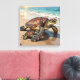 Lienzo Sea Turtle and Baby on Beach Illustration