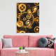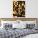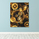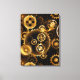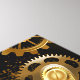 Seamless, metal, brass, gold gears on rusty dark background. Steampunk style.