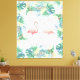Bonita Historia De Hadas Para Dos Flamingo - Ilustracion Acuático. ¡Sean Felices Para Siempre! Regalo de Fiesta del día de la boda. Hermoso flamingo rosa dos, flores y follaje exóticos tropicales, adorno floral de jungla, jardín, verano, evento de día de boda, salvar la fecha, Novia Groom, fiesta de aniversario, viaje, vacaciones, (regalos para ella y para él). Muro de arte y decoración > Galería de arte > Arte de tela. Diseño elegante con Monograma y caligrafía - plantilla de texto. Personalízalos añadiendo tu texto de deseos y Nombres.
