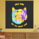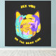 This cool design features a stylized dog’s face composed of layered teal, purple, pink, and gold brushstrokes on a bright yellow circle. The vibrant colors give it a modern pop-art vibe that's perfect for anyone who’s a big fan of their pup..