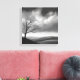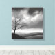 Esta impresionante pintura pintada en blanco y negro muestra un solitario árbol en lo alto de un vasto valle bajo un cielo nublado. La escena atemporal evoca sentimientos de soledad, serenidad y el poder duradero de la naturaleza.