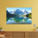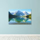 Capture the tranquility of nature with this stunning image of mountains reflected in a crystal clear lake. The green and blue waters reveal stones at the bottom, while rocky peaks and dense forests surround the scene. Intense sunlight creates a vibrant contrast between sky and earth. Ideal for room decor, calendars, and products celebrating the outdoors. A work that conveys peace, grandeur, and the untouched beauty of the natural landscape perfect for travel lovers.