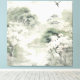 Un cuadro de arte japonés que se repite con una mezcla de crema clara y verde suave, con reflejos acuáticos para espacios como spas, estudios de yoga, salas de meditación o para invitaciones caseras personalizadas.