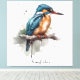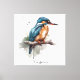 Pescador de cangrejos sentado en una rama de acuarela. El kingfisher es un símbolo de velocidad, paciencia y agilidad