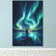 Feel the quiet power of a moment suspended in time. This breathtaking canvas print captures a lone figure standing beneath the vast glow of the aurora borealis, where light dances across the night sky in a mesmerizing display of nature’s energy.