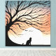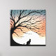 Lienzo Silhouette de Gato Negro de Árbol Gnarly en el sol
