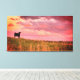 Se nota el efecto relajante de este magnífico lienzo de arte que tiene una solitaria silueta de vaca negra al atardecer con una bonita iluminación sobre las nubes y la colina de hierba.