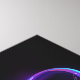 Símbolo de infinito violeta y brillante con colibrí azul sobre fondo negro. Neón.