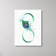 El símbolo del infinito con una pluma de pavo real brillante, verde y artística sobre un fondo blanco. Estilo tatuaje.
