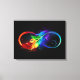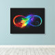 Símbolo de infinito dibujado artísticamente con una hermosa pluma arco iris sobre fondo blanco. Estilo tatuaje.
