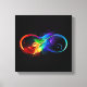 Símbolo de infinito dibujado artísticamente con una hermosa pluma arco iris sobre fondo blanco. Estilo tatuaje.