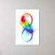 Símbolo de infinito dibujado artísticamente con una hermosa pluma arco iris sobre fondo blanco. Estilo tatuaje.