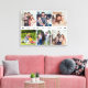 Cherish your most special moments with this Simple Family Photo Collage Heart Typography Canvas Print. The design lets you add 6 custom photos of your family memories. In the middle, you can personalize your family name and est year, creating a modern keepsake that perfectly reflects your love and togetherness. Ideal as a heartfelt anniversary gift for parents or grandparents, this simple and elegant family photo collage adds warmth and personality to any home décor.