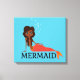 Este diseño presenta una bonita imagen personalizado de una feliz sirena relajante bajo el agua. Ella es una hermosa chica negra con cola de pez. Hay burbujas de aire a su cabeza. La palabra "MERMAID" está escrita debajo de la imagen.