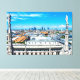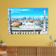 Pintura de Milán con rascacielos modernos en el distrito financiero de Porto Nuovo y estatuas de piedra de la catedral del Duomo.
