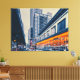 Esta imagen capta una escena callejera en Seattle, vista en el mercado Pike, con una mezcla de rascacielos modernos y edificios antiguos. Los edificios son en su mayoría grises y azules, y el mercado está iluminado por cálidas luces naranjas. La gente está caminando por la calle, y los autos son visibles a lo lejos.