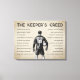 A vintage-inspired take on The Keeper's Creed, this canvas print features a hand-drawn soccer goalkeeper illustration on a warm parchment background surrounded by motivational sayings for keepers. The jersey is customizable with the player's last name and number for a personalized monogram touch. Ideal for a teen boy's bedroom, sports-themed game room, or athlete's hangout space. All text is fully customizable.