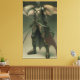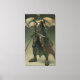 La obra de arte representa a un guerrero negro caballero en una poderosa y heroica pose. El guerrero lleva un traje negro y gris con una capa y una máscara, y está parado con un brazo levantado y el otro brazo extendido hacia delante. El guerrero tiene una expresión determinada en su rostro y su cuerpo es tenso y listo para la acción. El fondo de la obra es un paisaje urbano oscuro y misterioso, con edificios altos y una luna llena en el cielo.