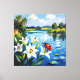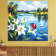Ein fröhlicher Sommertag am Seeufer – ein leuchtend roter Marienkäfer ruht auf weißen Lilien, während das Wasser in bunten Farben schimmert. Diese lebendige Malerei versprüht Ruhe, Freude und Harmonie mit der Natur. Perfekt für Liebhaber von Blumen, Insekten und Landschaftskunst.