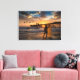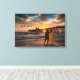 Una surfista con una tabla de surf mira a una espectacular puesta de sol cerca del muelle Oceanside. Oceanside está a 40 millas (64 km) al norte de San Diego, California, EE.UU.