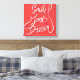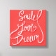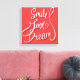 Tarjeta con elemento de diseño de tipografía dibujado a mano para posters de tarjetas de felicitación e impresión. Sonrisa amor sueño con pequeños nubarrones de corazones y sonrisa en el fondo rojo eps 10 | Bigstock® - Todos los derechos reservados.