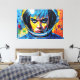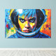 This vibrant digital artwork by Otis Porritt captures a striking figure encased in an astronaut's helmet, rendered with dynamic, impasto-like strokes. The subject's intense blue eyes pierce through a face defined by bold yellow and red hues, framed by electric blue hair. A stark black outline accentuates the features, creating a powerful pop art aesthetic. The background explodes with a chaotic yet colorful splatter pattern, contrasting with the figure's focused gaze and the sleek lines of the space gear.