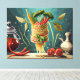 Nudelgerichte mal anders. Spaghetti wirbeln durch die Küche, mit Peperoni, Brokkoli und Kräuter. Daneben Tomatensoße und Ölflasche. Kunstwerk für ihre Küche, mit KI erstellt.