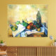 Vida fija ~ Paul Cézanne ~ Bella Artes de papel. Imagen de una botella con frutas sobre una mesa.