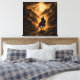 The final chapter in the Gothic Western saga finds our lone rider navigating a treacherous mountain pass under a lightning-filled sky. As the storm rages, the same mysterious glowing eyes watch from the shadows of the peaks, signaling that the journey is far from over. This square canvas is rendered with a heavy, weathered burlap grain finish, providing an antique and rugged textile aesthetic. The high-contrast amber lighting and dramatic silhouettes create a powerful, open-ended conclusion to the series.