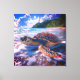 Canvas print of a sea turtle on the beach while the waves roll in .