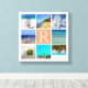 Salmón De Coral Color Su Plantilla De Collage De Fotos Con Impresión De Canvas De Monograma. Cargue hasta ocho de sus fotos en esta plantilla de collage. Este diseño es perfecto para bodas, vacaciones o fotos familiares. No todas las fotos deben cambiar. Cada foto se recortará automáticamente al tamaño en una forma cuadrada.