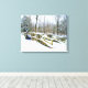 Hermoso "Winter Dreams" muestra una escena de invierno con un impresionante puente, Pikes Creek y nieve cayendo suavemente. Foto tomada en el Parque Petrifying Springs en el condado Kenosha, Wisconsin, EEUU.