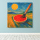 Esta vívida pintura digital surrealista presenta un pincel gigante plantado sobre una sandía roja a la mitad, que combina naturaleza y creatividad en una composición divertida y onírica. Un gran sol amarillo brilla en un cielo pintado de azul, que transmite calor a través de un vasto paisaje minimalista pintado de verdes, azules y amarillos. La escena se mezcla de capricho con profundidad simbólica —sugiriendo un mundo donde la creación y la realidad están inseparablemente entrelazadas.
