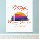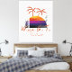Summer Vibes quiere ir a la playa Clásica de diseño estilo Retro caracteristicas "quiero ir a la playa" texto con atardecer tropical y silueta de surfista femenina