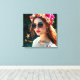 A young woman with auburn hair wears a vibrant flower crown and round sunglasses. Hummingbirds flit nearby.