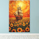 Lienzo Sunlit Sunflower Sea - Whimsical Sailing Ship Fan